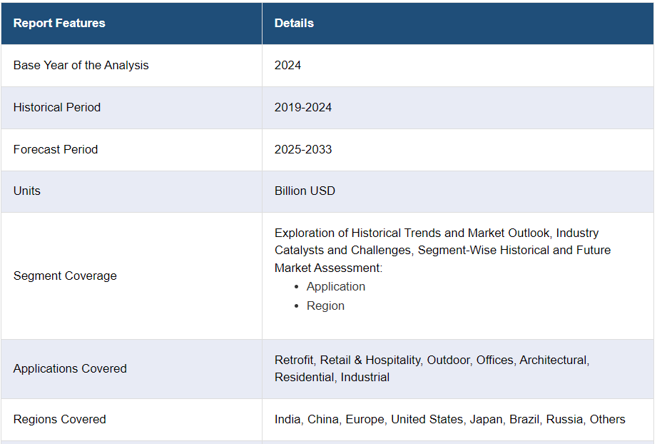 이 보고서는 애플리케이션에 따라 시장을 자세히 분류하고 분석했습니다. 여기에는 리트로핏, 소매 및 접객업, 아웃도어, 사무실, 건축, 주거 및 산업이 포함됩니다. 보고서에 따르면 리트로핏이 가장 큰 부분을 차지했습니다.