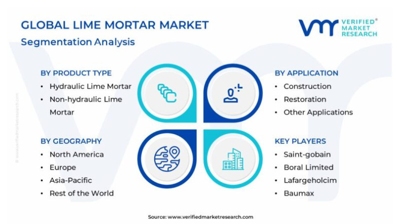 글로벌 석회 모르타르 시장은 제품 유형, 용도, 최종 사용자 및 지리적 요소를 기준으로 세분화됩니다.