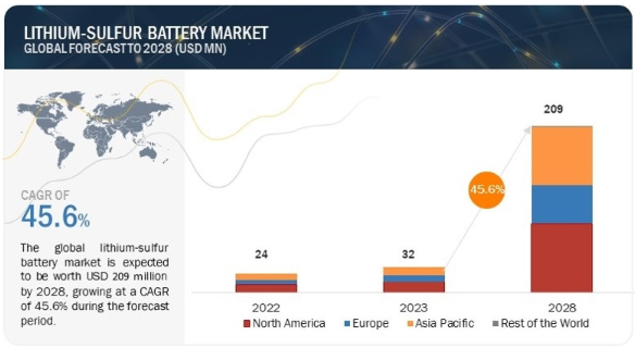 리튬황 배터리 시장 규모, 점유율, 통계 및 산업 성장 분석 : 2028년까지 세계 시장 예측