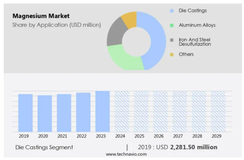 글로벌 마그네슘 시장 : 용도별 (다이캐스팅, 알루미늄 합금, 철 및 강철 탈황, 기타), 한국, 아시아, 미국, 2025-2029, 시장 규모