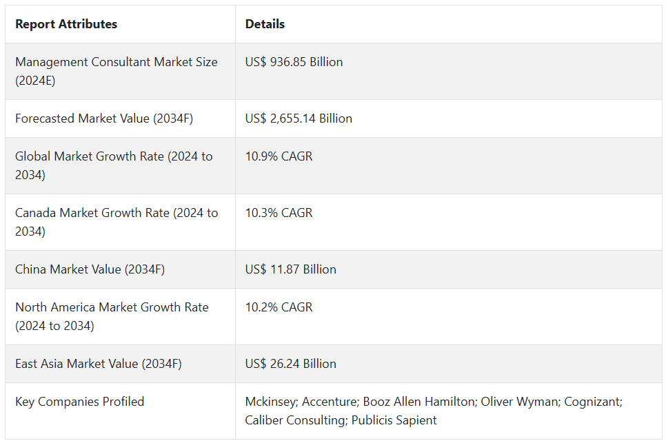Fact.MR은 이 새로운 시장 보고서에서 전 세계에 포진한 경영 컨설턴트 시장의 주요 업체들의 가격대, 매출 성장, 생산 능력, 투기적 기술 확장에 대한 자세한 정보를 제공합니다.