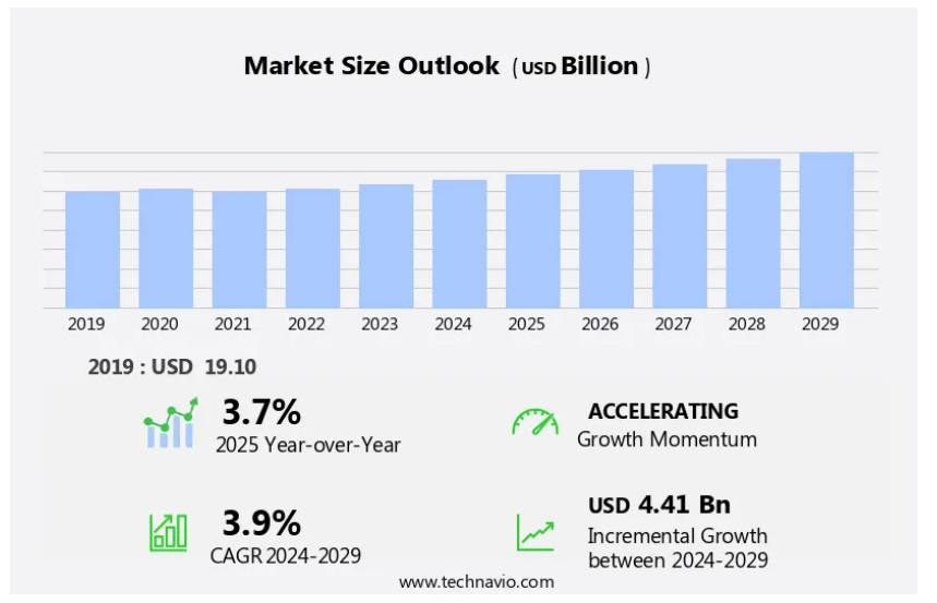 2025-2029년 시장의 전년 대비 성장률은 얼마입니까?