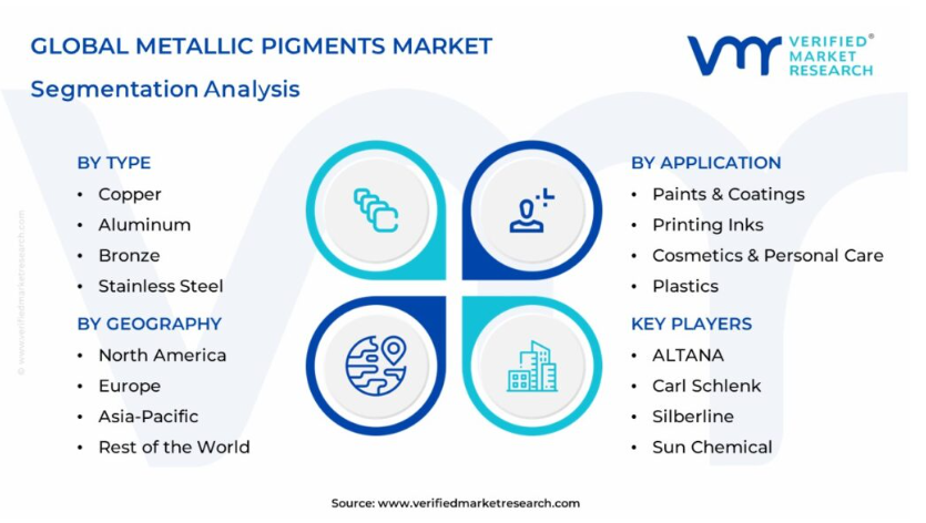 글로벌 금속 안료 시장은 유형, 응용 프로그램 및 지리를 기준으로 세분화됩니다.