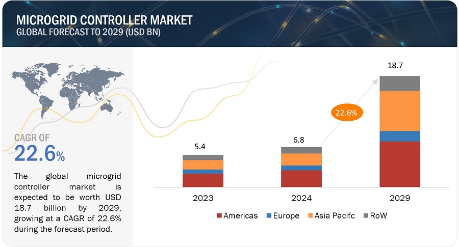 [225페이지 보고서] 마이크로그리드 컨트롤러 시장 규모는 2024년 68억 달러에서 2029년 187억 달러로 2024-2029년 기간 동안 22.6%의 CAGR로 성장할 것으로 전망됩니다.
