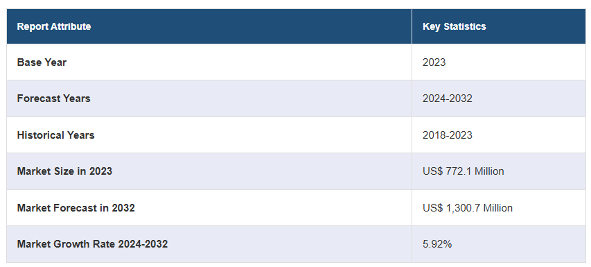 글로벌 점막 분무 장치 시장은 2023년 기준으로 약 7억 7,210만 달러 규모로, 2024년부터 2032년까지 연평균 5.92%의 성장률을 기록하며 2032년에는 13억 7백만 달러에 이를 것으로 예상되고 있습니다. 이러한 성장은 기술 발전과 의료 응급 상황에서의 효율적인 약물 전달 수요 증가, 그리고 아시아 태평양 지역의 의료 인프라 확대에 기인합니다.