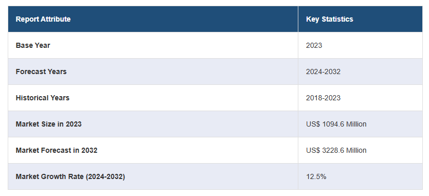 글로벌 나노 산화 아연 시장은 2023년 기준 1,094.6백만 달러 규모로, 2024년부터 2032년까지 연평균 12.5% 성장할 것으로 예상됩니다. 이 시장은 주로 코팅 및 페인트에 나노 산화 아연의 활용 증가, 지속 가능한 농업에 대한 정부 지원, 재생 에너지 기술 투자 증가에 의해 주도됩니다. 나노 산화 아연은 전자, 의료, 화장품 등 다양한 산업에서 사용되며, 친환경 대체재로서의 수요도 높아지고 있습니다.