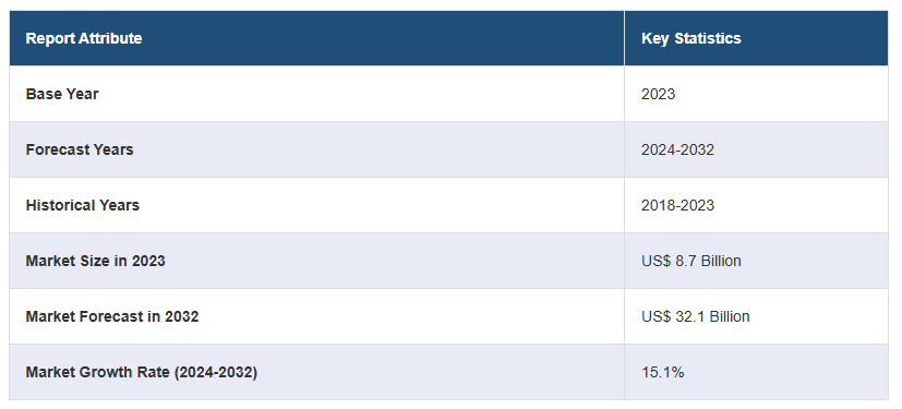 전 세계 나노 세라믹 분말 시장 규모는 2023년에 87억 달러에 달했습니다. 앞으로 IMARC 그룹은 2024~2032년 동안 15.1%의 성장률(CAGR)을 보이며 2032년까지 시장이 321억 달러에 이를 것으로 예상하고 있습니다. 전기 및 전자 산업의 상당한 성장, 차세대 컴퓨터 칩의 지속적인 기술 발전, 광전지(PV) 셀의 빠른 제품 활용이 시장을 이끄는 주요 요인 중 일부입니다.