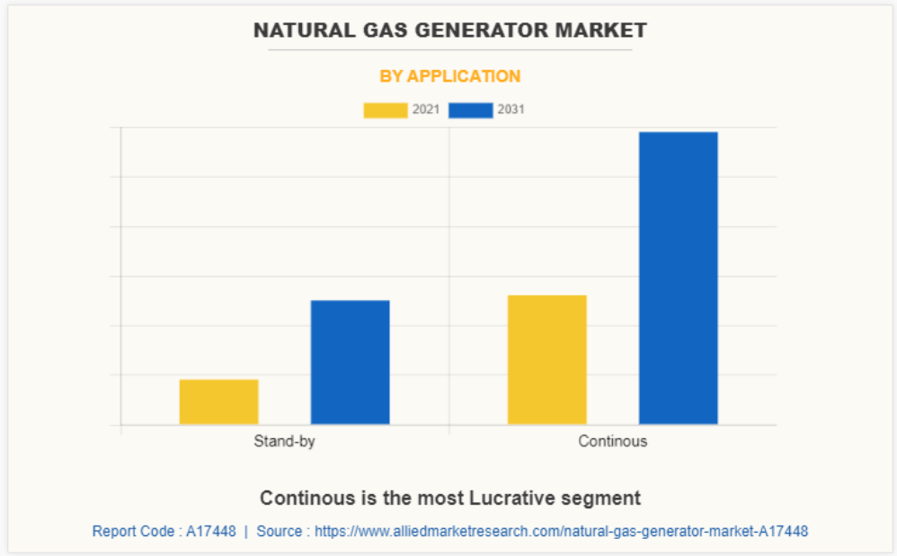 응용 프로그램별로 보면, 2020년 세계 천연가스 발전기 시장은 연속형 세그먼트가 주도했으며, 예측 기간 동안에도 가장 빠르게 성장하는 세그먼트로 남을 것으로 예상됩니다. 이는 광업, 건설, 석유 및 가스 운영, 시추, 대형 선박과 같은 해양 사용 등 광범위한 응용 분야가 있기 때문입니다. 그러나 석유 및 가스 업스트림 생산의 급속한 확장으로 인해 연속형 천연가스 발전기에 대한 수요가 증가했으며, 이는 시장의 주요 원동력이 될 수 있습니다.
