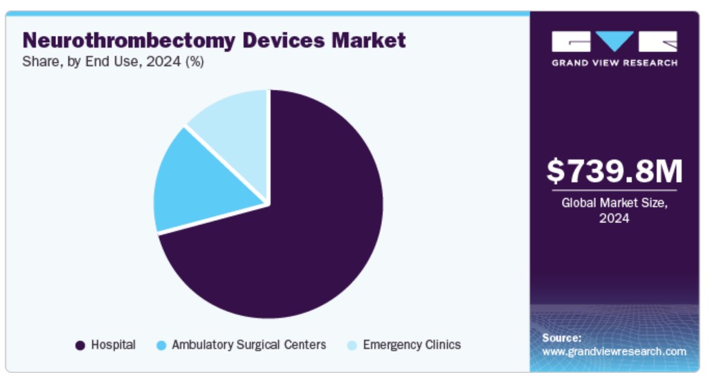 그러나 흡인/흡입 장치 부문은 의사들의 선호도가 높아짐에 따라 2025년부터 2030년까지 연평균 성장률 7.3%를 기록할 것으로 예상됩니다. 또한, 이러한 장치는 많은 인구 사이에서 신경학적 장애의 유병률이 증가함에 따라 성장을 보이고 있습니다. 이 장치는 혈관 내 혈전을 흡입하고, 큰 혈관 폐색을 정확하게 재혈관화합니다. 또한, 뇌졸중 치료에 최신 기술을 사용하는 사례가 증가하는 것도 흡인 장치의 전반적인 성장을 촉진하는 요인입니다. 2018년 9월, Penumbra는 뇌졸중 혈전제거술 분야에서 흡인 기술을 적용한 첨단 Penumbra JET 7 및 Penumbra JET D 재관류 카테터를 출시했습니다. 이 장치는 의사가 페넘브라 엔진의 깊은 진공 흡인력을 통해 혈전을 안전하게 추출할 수 있도록 특별히 설계되었습니다. 따라서, 지속적인 제품 출시로 인해 흡인 장치의 채택이 증가할 것으로 예상됩니다.