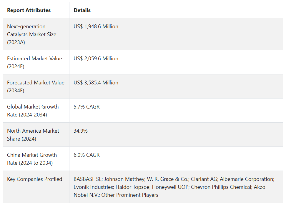 Fact.MR은 최근 발표된 보고서에서 지역별 차세대 촉매의 주요 제조업체의 가격대, 판매 성장, 생산 능력, 투기적 기술 확장에 대한 자세한 정보를 제공했습니다.