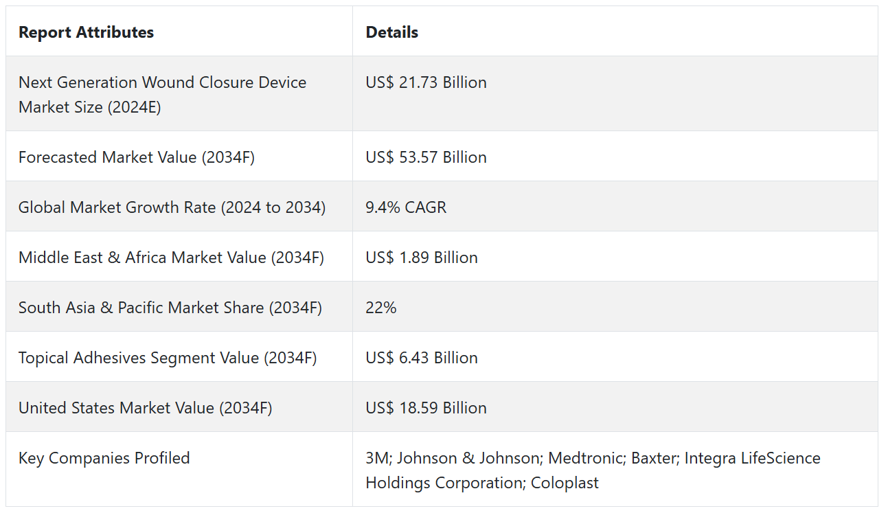 차세대 상처 봉합 장치 시장 전망 (2024~2034년)