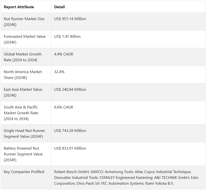 너트 러너 시장 전망 (2024~2034년)