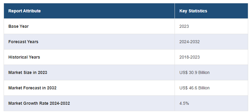 2023년 글로벌 오프로드 타이어 시장 규모는 309억 달러에 달했습니다. 앞으로 IMARC 그룹은 2024~2032년 동안 4.5%의 성장률(CAGR)을 보이며 2032년까지 시장 규모가 466억 달러에 달할 것으로 예상하고 있습니다. 건설 및 광업의 확장, 광범위한 인프라 개발 프로젝트, 환경 의식의 증가, 급속한 기술 발전, 관광 및 레크리에이션의 급증, 원자재 가격 변동, 물류 및 운송 부문의 성장은 시장 성장을 촉진하는 요인 중 일부입니다.