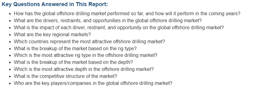 이 시장의 주요 기업들은 시장 지위를 강화하고 변화하는 산업 역학에 대응하기 위해 다양한 전략적 이니셔티브에 적극적으로 참여하고 있습니다. 이 기업들은 특히 심해 및 초심해 부문에서 시추 효율성과 안전성을 향상시키기 위해 기술 발전에 막대한 투자를 하고 있습니다. 또한, 기술, 지리적 입지, 산업 전문성 등 서로의 강점을 활용하기 위해 전략적 제휴와 파트너십을 맺는 데에도 주력하고 있습니다. 지속가능성에 대한 관심이 높아짐에 따라, 이들 기업 중 상당수가 환경친화적 관행과 기술을 운영에 통합하고 있습니다. 또한, 새로운 계약을 확보하고 잠재력이 아직 개발되지 않은 지역에 투자함으로써 글로벌 입지를 확대하는 동시에, 유가 변동과 규제 변화로 인한 어려움을 극복하고 있습니다. 이러한 적극적인 접근 방식은 자원 추출을 최적화하고, 운영 위험을 줄이며, 급변하는 시장에서 경쟁력을 유지하기 위한 것입니다.