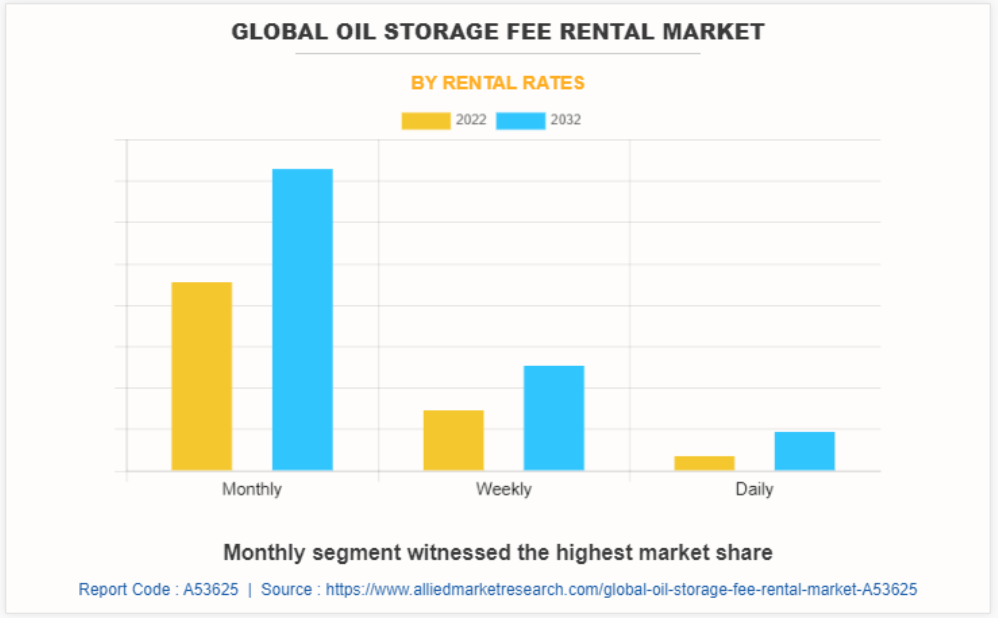 임대료에 따라 시장은 일일, 주간, 월간으로 분류됩니다. 2022년에는 비용 효율성 때문에 월간 부문이 시장을 지배했습니다. 석유 생산 회사는 생산 능력을 늘리기로 결정하고 장기 저장 서비스에 진출하여 월간 임대료 부문이 시장을 지배하게 되었습니다.