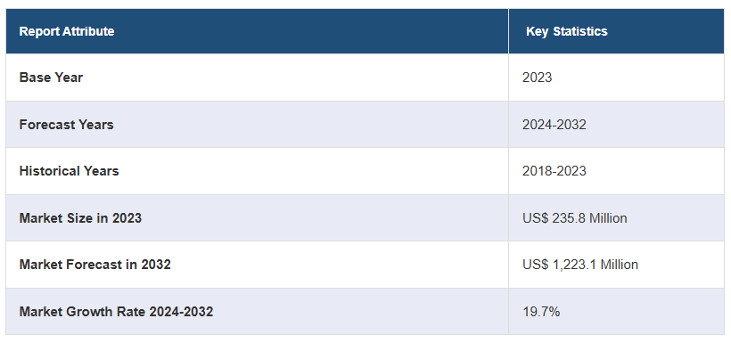 글로벌 OLED 마이크로디스플레이 시장은 2023년 미화 2억 3,580만 달러에 달하며, 2024년부터 2032년까지 연평균 성장률(CAGR) 19.7%를 기록할 것으로 예상됩니다. 이 시장의 성장은 의료용 디스플레이, 웨어러블 기기, 소비자 가전의 수요 증가에 의해 주도되고 있습니다. 또한, 전자 기기의 소형화와 넓은 시야각, 고화질 이미지를 선호하는 소비자들의 경향이 주요 시장 동인으로 작용하고 있습니다.