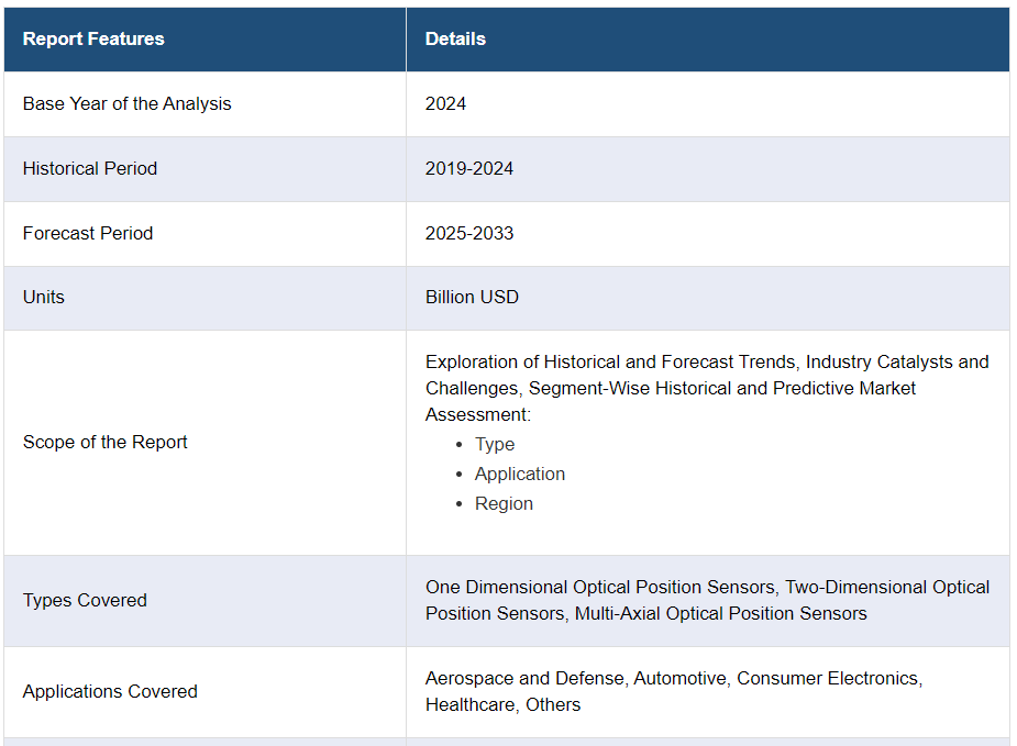 IMARC 그룹은 2025-2033년 글로벌, 지역 및 국가 수준에서의 예측과 함께 글로벌 광학 위치 센서 시장의 각 부문의 주요 동향에 대한 분석을 제공합니다. 이 보고서는 유형과 애플리케이션을 기준으로 시장을 분류했습니다.