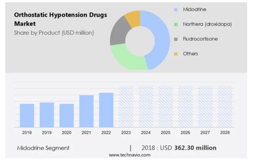 미도드린 부문은 예측 기간 동안 상당한 성장을 보일 것으로 예상됩니다. 프로드러그인 미도드린은 활성 대사 산물인 알파1-아드레날린 작용제인 데스글리미도드린으로 빠르게 전환됩니다. 이 약물은 혈관 수축을 유도하고 혈압을 높여서 기립성 저혈압(OH)에 효과적인 치료법입니다. 미식품의약국(FDA)은 1996년 중증 또는 생명을 위협하는 질병에 대한 신속 승인 규정에 따라 미도드린을 승인했습니다.