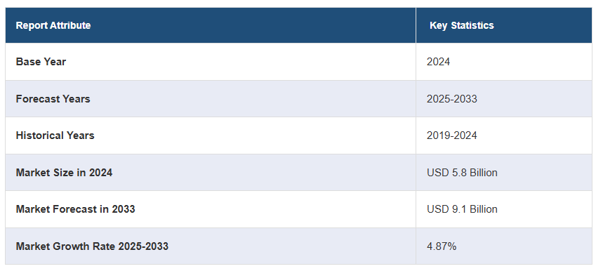 글로벌 페인팅 도구 및 액세서리 시장 규모는 2024년에 58억 달러에 달했습니다. IMARC 그룹은 2033년까지 시장 규모가 91억 달러에 달할 것으로 예상하고 있으며, 2025-2033년 동안 연평균 성장률(CAGR)이 4.87%에 달할 것으로 전망하고 있습니다. 건설 및 부동산 산업의 확장, DIY(Do-It-Yourself) 프로젝트의 인기 상승, 지속 가능한 제품을 촉진하는 환경 인식의 증가, 자동차 부문의 성장, 도시화 및 인프라 개발의 확대, 도장 장비의 기술 발전, 프리미엄 페인트 마감재 선호, 전자상거래의 편리함 등이 시장 성장을 가속화하는 요인들입니다.