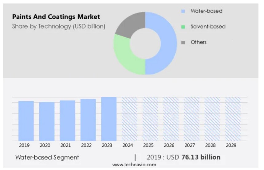 이 시장은 외벽 및 내벽 페인트, 목재 마감재, 에나멜, 해양, 자동차, 일반 산업 등 다양한 산업을 위한 다양한 유형의 보호 코팅을 포함한 다양한 제품을 포함합니다. 불소 중합체, 열가소성 복합체 또는 열경화성 수지로 만든 것과 같은 첨단 코팅에 대한 수요가 부식 방지, 경도, 마찰 특성이 우수하기 때문에 증가하고 있습니다. 지속 가능성은 시장에서 점점 더 중요하게 여겨지고 있으며, 이로 인해 수성 코팅, 식물성 수지, 기타 친환경 옵션의 인기가 높아지고 있습니다. 건축용 페인트와 코팅제는 반사 및 흡수 특성으로 인해 건축 및 구조적 용도로 널리 사용되어 건물의 미관과 기능을 향상시킵니다.