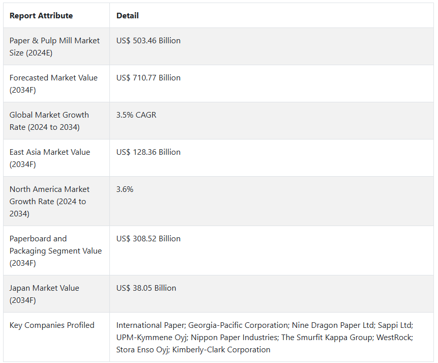 제지 & 펄프 공장 시장은 2024년부터 2034년까지 연평균 3.5%의 성장률로 확대될 것으로 예상됩니다.