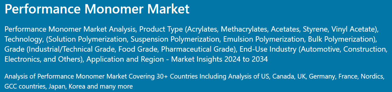 Fact.MR은 최근 발표된 보고서에서 지역별 주요 성능 모노머 제조업체의 가격대, 판매 성장, 생산 능력, 투기적 기술 확장에 대한 자세한 정보를 제공했습니다.