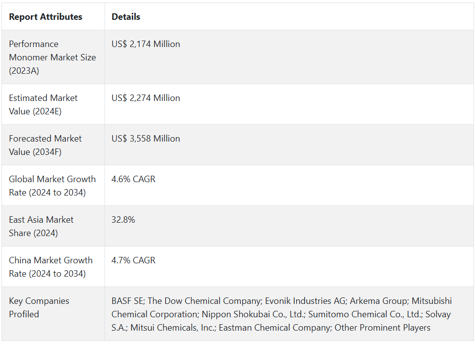 성능 모노머 시장 전망 (2024~2034년)