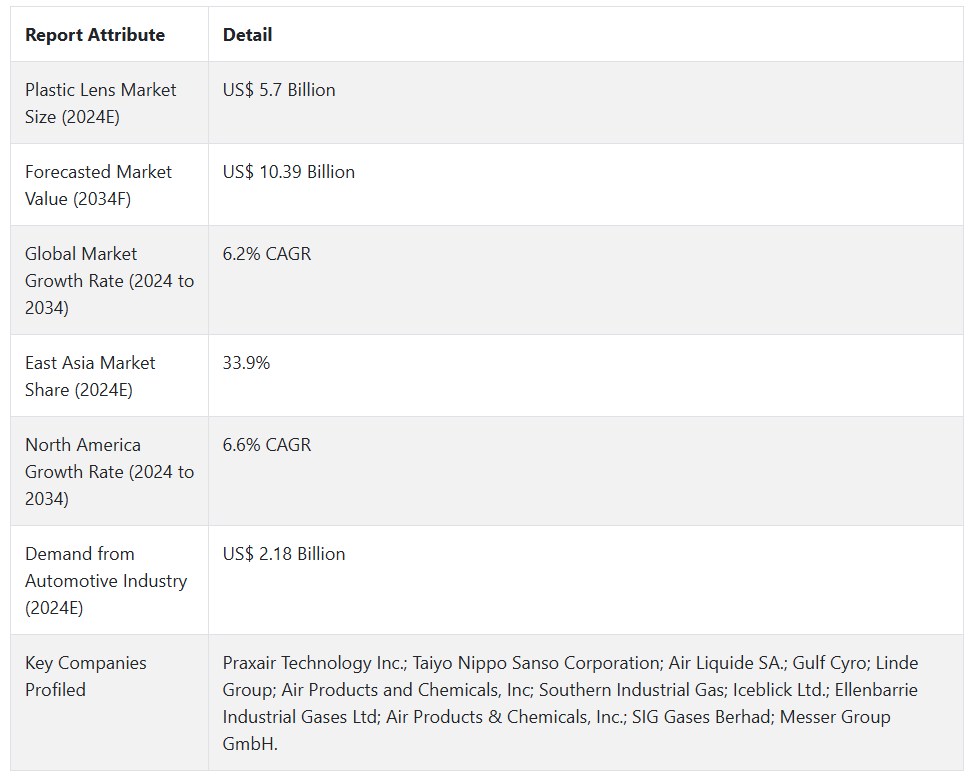 플라스틱 렌즈 시장 전망 (2024년~2034년)
