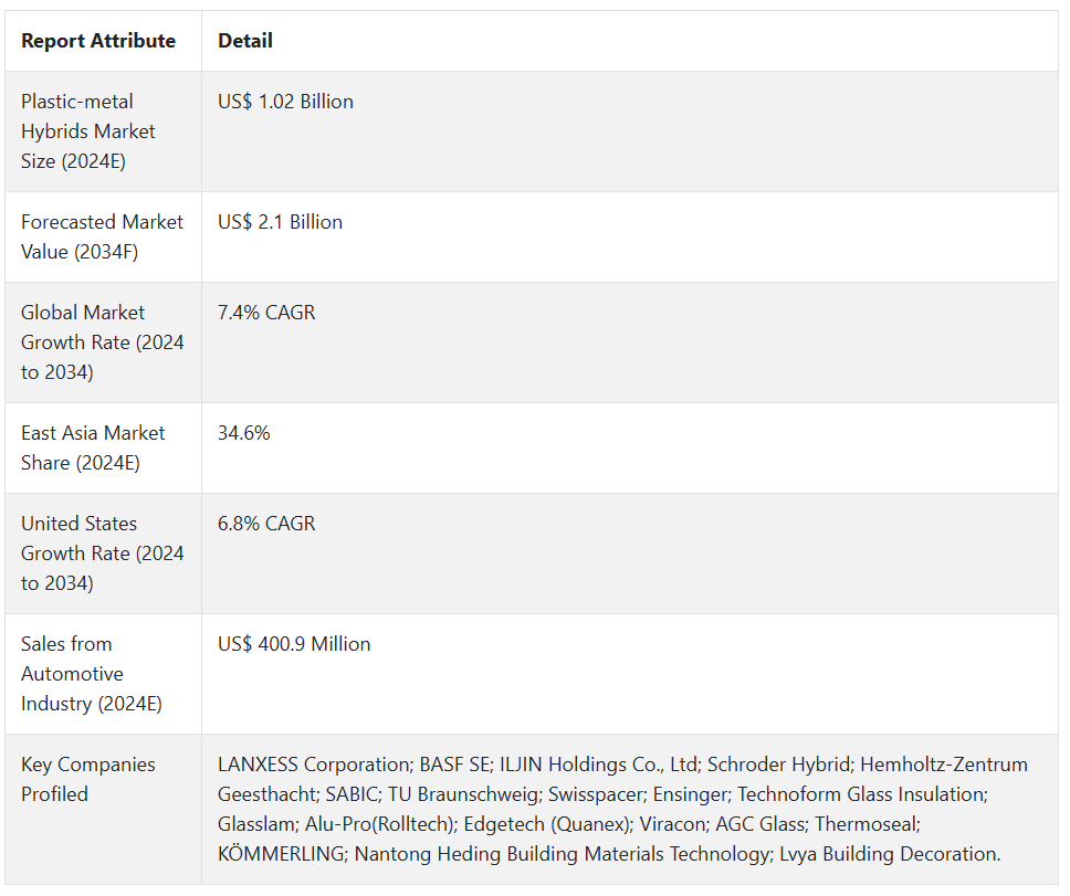 플라스틱-금속 하이브리드 시장 전망 (2024년에서 2034년)