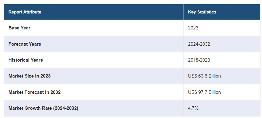 글로벌 배관 부품 시장 규모는 2023년에 636억 달러에 달했습니다. IMARC 그룹은 2032년까지 시장 규모가 977억 달러에 달할 것으로 예상하고 있으며, 2024년부터 2032년까지 연평균 성장률(CAGR)이 4.7%에 달할 것으로 전망하고 있습니다. 급속한 도시화와 산업화, 인구 증가, 주거 및 상업용 건물의 현대화 및 리노베이션 추세 증가, 물 절약과 지속 가능한 건설 관행을 목표로 하는 여러 국가의 정부의 엄격한 규제와 이니셔티브가 시장을 이끄는 주요 요인 중 일부입니다.