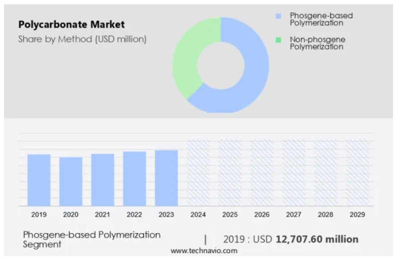 포스겐 기반 중합 부문은 예측 기간 동안 상당한 성장을 보일 것으로 추정됩니다. 다용도 내구성 플라스틱인 폴리카보네이트의 생산은 주로 포스겐 기반 중합 공정에 의존합니다. 이 방법은 분자량이 큰 폴리머를 효율적으로 생성할 수 있도록 하는 방법으로, 물과 유기 용매의 경계에서 포스겐과 알코올의 계면 중합을 포함합니다. 그러나 독성이 강한 화합물인 포스겐을 사용하기 때문에 안전성에 대한 우려가 큽니다. 자동차 산업에서 폴리카보네이트는 우수한 기계적 특성과 열 및 충격에 대한 저항성 때문에 헤드램프 하우징과 승용차 부품을 포함한 경량 차량의 경량 부품 제조에 광범위하게 사용됩니다.