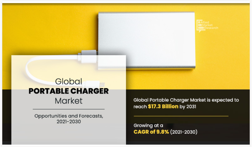 글로벌 휴대용 충전기 시장 규모는 2021년 68억 달러로 추정되었으며, 2022년부터 2031년까지 연평균 성장률(CAGR) 9.8%를 기록하며 2031년에는 173억 달러에 이를 것으로 예상됩니다. 휴대용 충전기는 입력된 전원의 에너지를 저장하고 필요할 때 방출하는 회로가 장착된 일종의 휴대용 배터리입니다. 이러한 가제트는 디지털 제품의 채택이 급증하면서 현재 전 세계적으로 엄청난 인기를 얻고 있습니다. 또한 내구성, 휴대성, 다중 소켓, 빠른 충전, 저렴한 비용 등 독특한 특성으로 인해 기술에 정통한 소비자들 사이에서 수요가 증가하고 있습니다. 정전이 길어지거나 전기가 불안정할 때 휴대용 충전기는 기기가 꺼지는 것을 방지하는 이상적인 옵션입니다. 휴대폰, 디지털 카메라, 태블릿, 노트북은 태양광 충전기로 전원을 공급할 수 있는 기기 중 일부입니다.