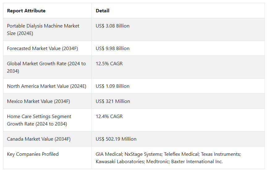 휴대용 투석기 시장 전망 (2024년~2034년)