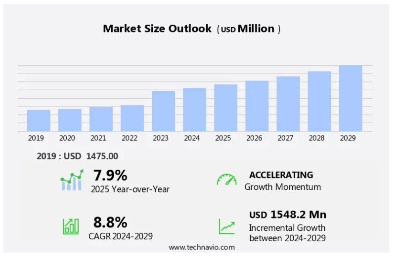 2025-2029년 사이에 시장 규모가 15억 4,820만 달러 증가할 것으로 예상됩니다.