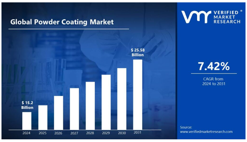 분체 도료 기술의 발전: 분체 도료 기술은 발전 덕분에 더욱 다재다능해지고 있습니다. 분체 도료 연구소의 연구에 따르면, 저온 경화 분체의 발전으로 목재와 플라스틱과 같은 열에 민감한 기질에 대한 새로운 시장이 창출되었습니다. Verified Market Research에 따르면, 2031년까지 전 세계 분체 도료 시장은 152억 달러에 이를 것으로 추정되며, 2023년부터 2031년까지 연평균 7.42%의 성장률을 보일 것으로 예상됩니다. 이러한 성장은 분체 도료가 더 넓은 범위의 용도에 적합하도록 만드는 기술 발전에 크게 기인합니다.