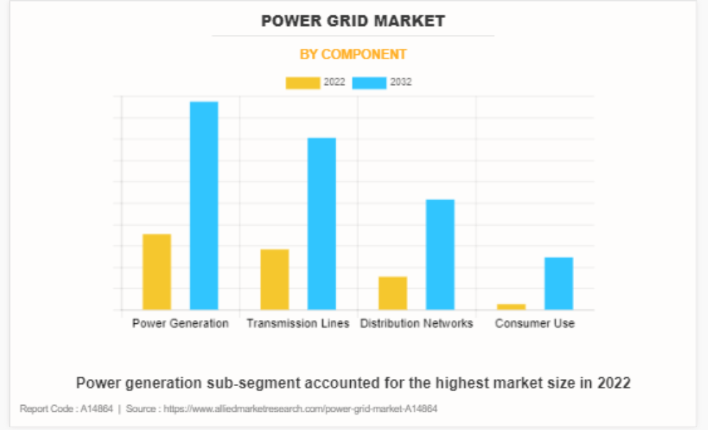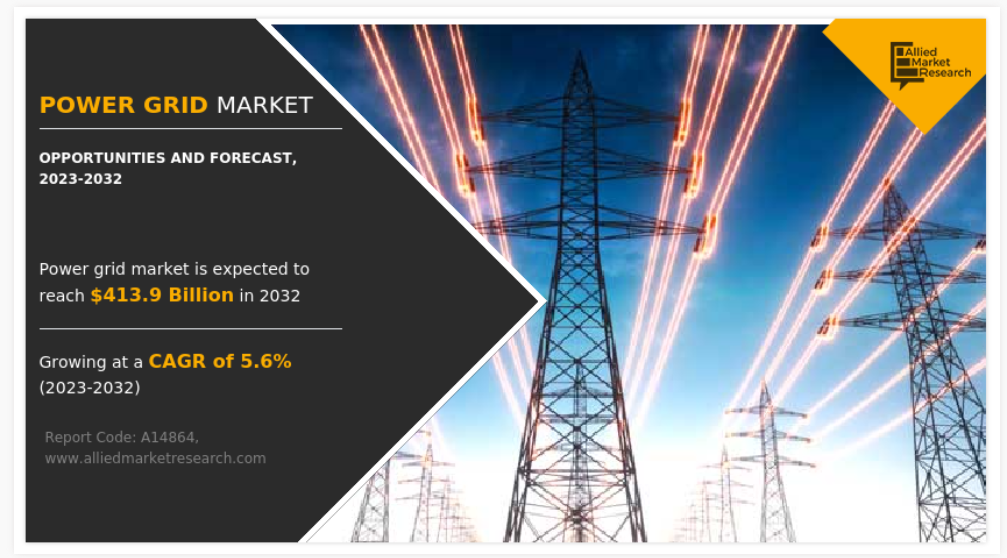 글로벌 전력망 시장 규모는 2022년 2,416억 달러로 추정되었으며, 2032년에는 4,139억 달러에 이를 것으로 예상되며, 2023년부터 2032년까지 연평균 5.6% 성장할 것으로 전망됩니다. 전력망은 현대 전기 시스템의 중추 역할을 하는 전력선과 관련 인프라의 정교한 네트워크입니다. 전력망은 발전소에서 광범위한 지리적 영역에 걸쳐 가정과 기업에 전기를 전송하고 분배하는 데 중추적인 역할을 합니다. 이 복잡한 발전, 전송, 공급의 웹은 원활한 전력 공급을 보장합니다. 전력망은 발전소, 송전선, 타워, 개별 배전선으로 구성되어 있으며, 이 전력망은 가전제품, 전기 자동차, 항공, 재생 에너지 저장, 제조, 산업, 상업, 주거 등 다양한 분야에 전력을 공급합니다. 따라서 전력망은 여러 응용 분야에서 전기 생산, 분배, 전송에 중요한 역할을 합니다.