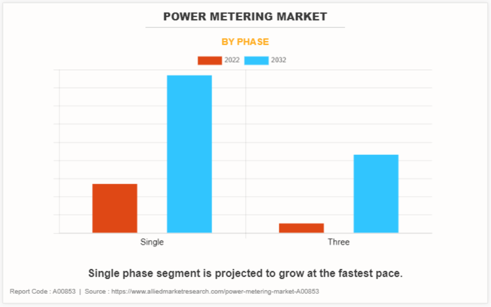 유형별로 전력 계량기 시장은 단상과 3상으로 나뉩니다. 단상 부문은 2022년 전력 계량기 시장 점유율을 지배했습니다. 또한 전력 계량기 시장 예측 기간 동안 가장 빠른 속도로 성장할 것으로 예상됩니다. 단상 전력량계에서 수집된 데이터는 전력 회사가 고객에게 전기 사용량을 정확하게 청구하는 데 사용됩니다. 많은 최신 단상 전력량계는 스마트 그리드 인프라의 일부로, 원격 데이터 수집과 전력 회사와의 양방향 통신을 가능하게 합니다. 단상 전력량계는 태양광 패널이 설치된 가정에서 전력망에서 소비되는 전기량과 태양광 시스템에서 생성되는 잉여 에너지를 측정하는 데 사용됩니다. 이러한 모든 요소가 전력량계 시장의 성장에 기여합니다.