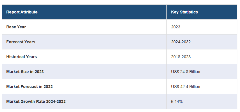 전 세계 전력 변압기 시장 규모는 2023년에 미화 248억 달러에 달했습니다. 앞으로 IMARC 그룹은 2024~2032년 동안 6.14%의 성장률(CAGR)을 보이며 2032년까지 시장이 424억 달러에 달할 것으로 예상하고 있습니다. 이 시장은 주로 전자제품 및 중장비 작동을 위한 산업 및 상업 부문의 전력 수요 증가, 재생 에너지의 광범위한 활용, 전력 전송을 모니터링하고 관리하기 위한 스마트 미터 및 그리드 설치 증가에 의해 주도되고 있습니다.