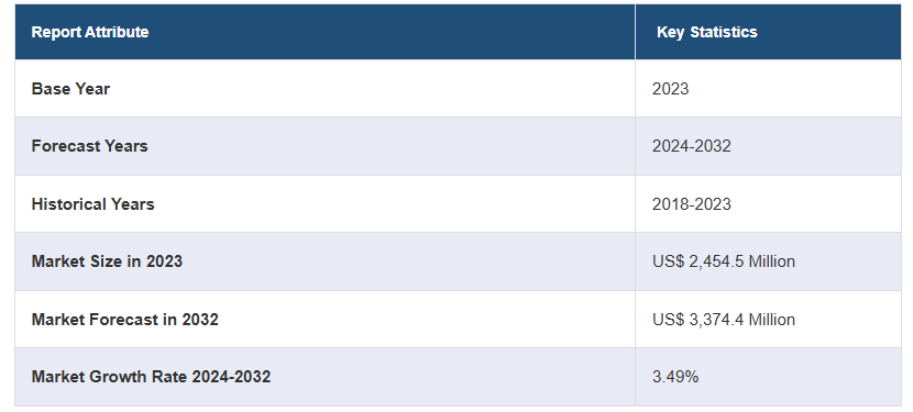 글로벌 프로 스피커 시장 규모는 2023년에 미화 2,454.5백만 달러에 달했습니다. 앞으로 IMARC 그룹은 2024~2032년 동안 3.49%의 성장률(CAGR)을 보이며 2032년까지 시장이 3,374.4백만 달러에 달할 것으로 예상하고 있습니다. 상업 부문에서 전문 오디오 스피커에 대한 수요 증가, 무선 디지털 기술의 다양한 혁신, 사물 인터넷(IoT)과 전문 오디오 장비의 통합이 주로 시장 성장을 주도하고 있습니다.