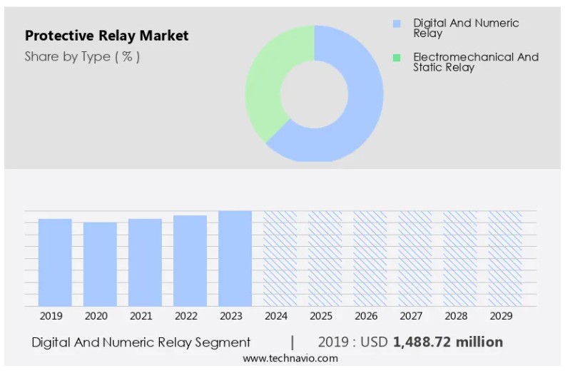 글로벌 보호 릴레이 시장 : 유형 (디지털 및 숫자 릴레이, 전기 기계 및 정적 릴레이), 한국, 아시아, 미국, 2025-2029, 시장 규모