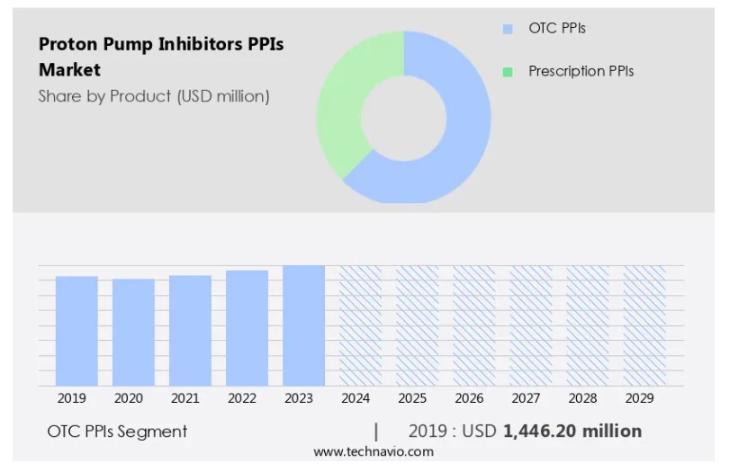 글로벌 프로톤 펌프 억제제 (PPI) 시장 : 제품별 (일반의약품 PPI, 처방약 PPI), 한국, 아시아, 미국, 2025-2029, 시장 규모