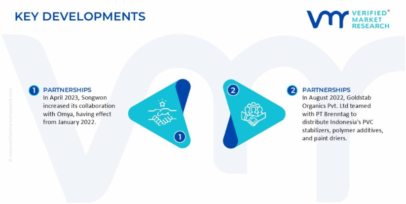 2022년 8월, Goldstab Organics Pvt. Ltd는 PT Brenntag와 협력하여 인도네시아의 PVC 안정제, 폴리머 첨가제, 페인트 건조제를 유통했습니다. 이 파트너십은 Goldstab이 동남아시아 및 극동 지역의 소비자를 확대하고 그들과 더 가까워지는 데 도움이 되었습니다.