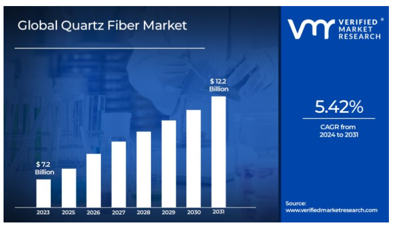 석영 섬유 시장 규모는 2023년에 72억 달러로 평가되었으며, 2031년까지 122억 달러에 이를 것으로 추정되며, 2024년부터 2031년까지 연평균 성장률(CAGR) 5.42%로 성장할 것으로 예상됩니다.