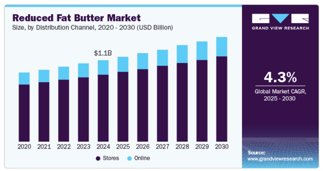 온라인 채널은 예측 기간 동안 가장 빠른 4.7%의 CAGR로 성장할 것으로 예상됩니다. 전자상거래 플랫폼의 인기가 높아짐에 따라 소비자들은 집에서 편리하고 효율적으로 저지방 버터 제품을 구매할 수 있게 되었습니다. 온라인 쇼핑은 더 다양한 제품을 선택할 수 있다는 장점이 있어, 소비자들이 여러 브랜드를 비교하고 자신의 식습관에 가장 잘 맞는 제품을 찾을 수 있습니다. 또한, 디지털 마케팅과 소셜 미디어의 성장은 소비자의 구매 결정에 영향을 미치고, 온라인 상점으로의 트래픽을 유도합니다.