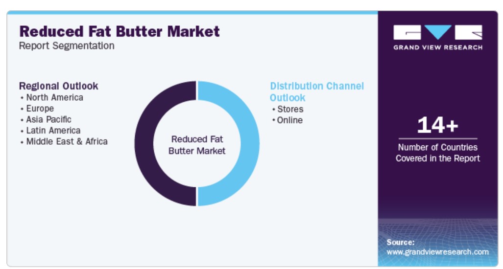 이 보고서는 글로벌, 지역, 국가 수준에서 매출 성장을 예측하고 2018년부터 2030년까지 각 하위 부문에서 최신 산업 동향에 대한 분석을 제공합니다. 이 연구를 위해 Grand View Research는 유통 채널과 지역을 기준으로 글로벌 저지방 버터 시장 보고서를 세분화했습니다.