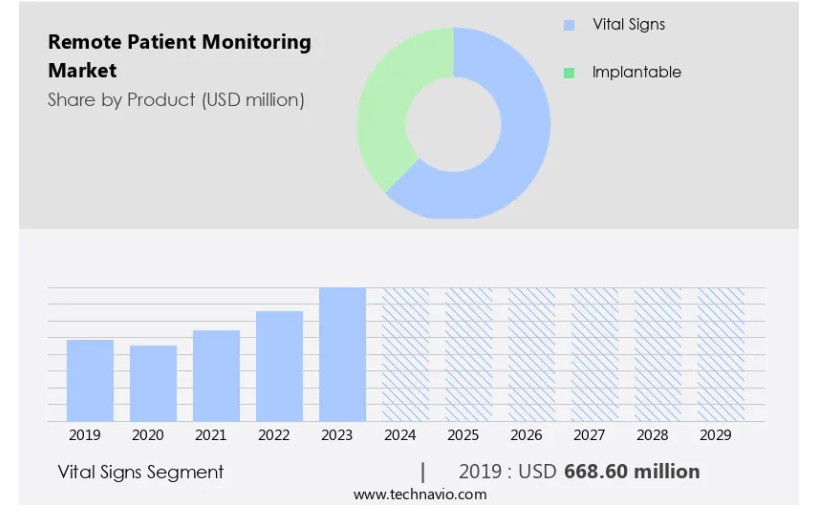 글로벌 원격 환자 모니터링 시장 : 제품 (활력 징후, 이식형), 한국, 아시아, 미국, 2025-2029, 시장 규모