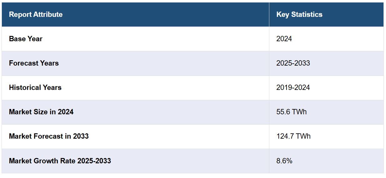 한국 재생에너지 시장 규모는 2024년 55.6 TWh에 달했습니다. 향후 전망으로, IMARC 그룹은 2025년부터 2033년까지 연평균 성장률(CAGR) 8.6%를 기록하며 2033년까지 시장 규모가 124.7 TWh에 이를 것으로 예상합니다. 재생에너지 의무할당제(RPS)와 같은 유리한 정부 정책 시행, 청정 에너지 분야의 지속적인 기술 발전, 전국적으로 지속가능한 에너지 솔루션에 대한 수요 증가 등이 시장을 주도하는 주요 요인으로 꼽힌다.