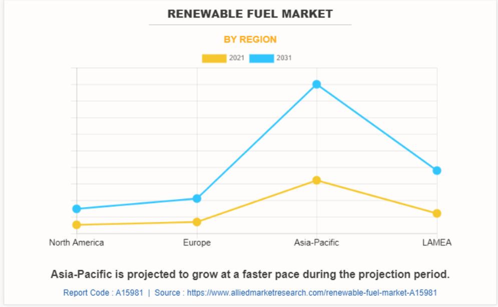 지역별로 보면, 아시아 태평양 지역이 재생 가능 연료 시장 점유율이 가장 높습니다. 이 지역은 예측 기간 동안 더 높은 CAGR로 성장할 것으로 예상됩니다. 이는 전기 수요가 증가한 인구 밀집 경제의 영향으로 볼 수 있습니다. 또한, 지속 가능한 연료 프로젝트도 이 지역의 재생 가능 연료 산업 성장에 기여하고 있습니다.
