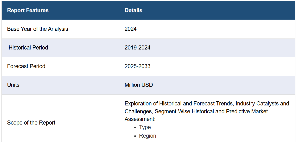 IMARC 그룹은 시장 각 세그먼트의 주요 동향 분석과 함께 2025-2033년 국가별 전망을 제공합니다. 본 보고서는 유형별 시장 분류를 수행하였습니다.