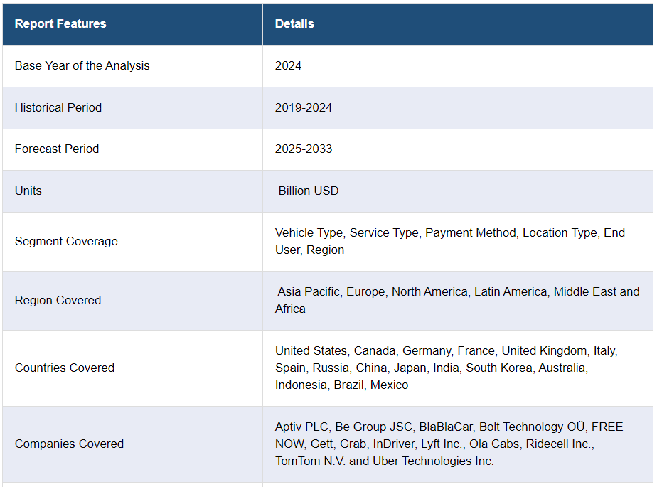 업계의 경쟁 환경은 또한 주요 플레이어의 프로필과 함께 앱티브 PLC, 비 그룹 JSC, 블라블라카, 볼트 테크놀로지 OÜ, 프리 나우, 게트, 그랩, 인드라이버, 리프트 주식회사, 올라 택시, 라이드셀 주식회사, 톰톰 N.V. 및 우버 테크놀로지스 주식회사 등의 프로필을 조사했습니다.
